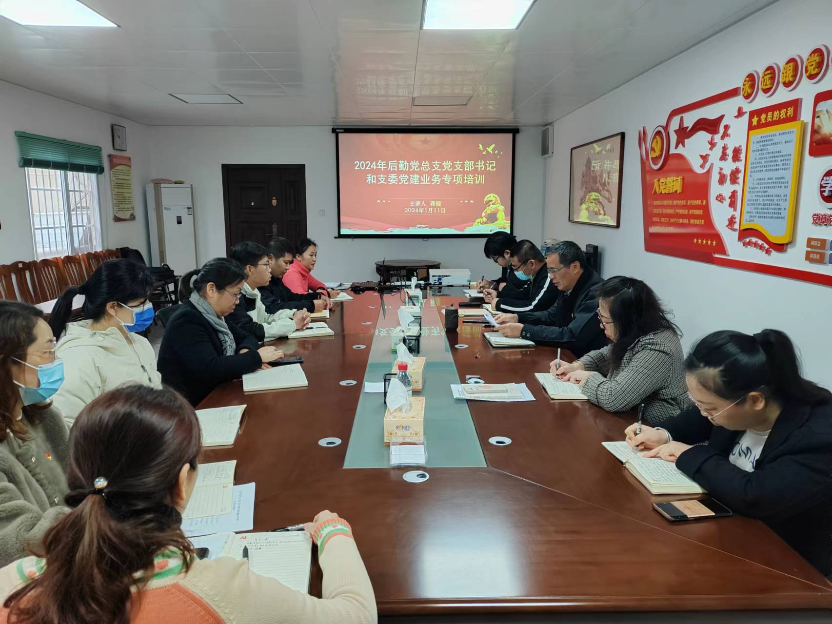 2024年1月11日上午,后勤党总支开展党支部书记和支委党建业务专项培训。党总支委员、组织员、各支部书记及支委参加了培训。