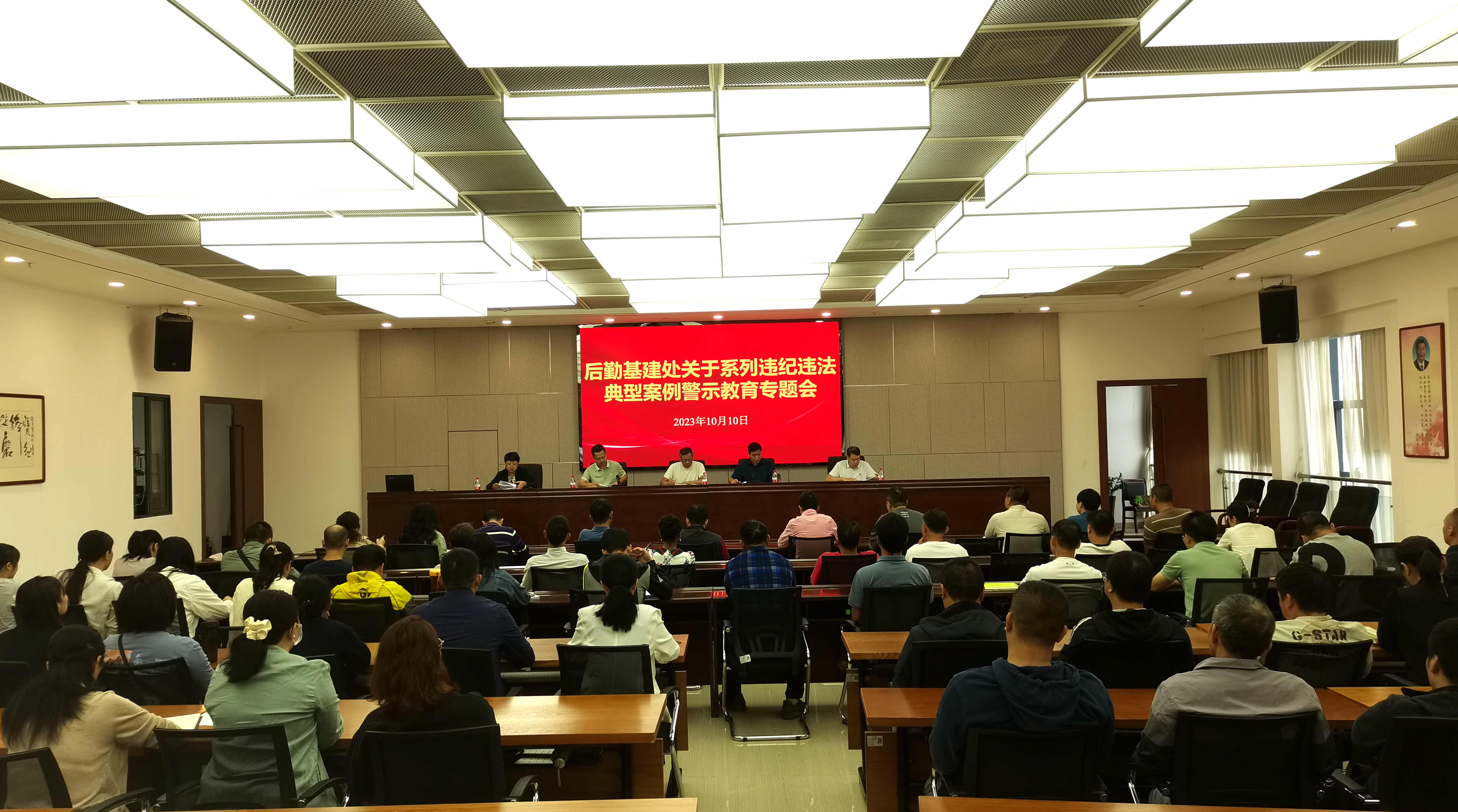 10月10日上午,为深入贯彻落实加强纪律教育建设清廉学校系列活动要求,营造风清气正的政治生态,筑牢廉洁自律防线,后勤基建处召开系列违纪违法典型案例警示教育专题会议,梁吉健处长主持,全体教职工参加会议。