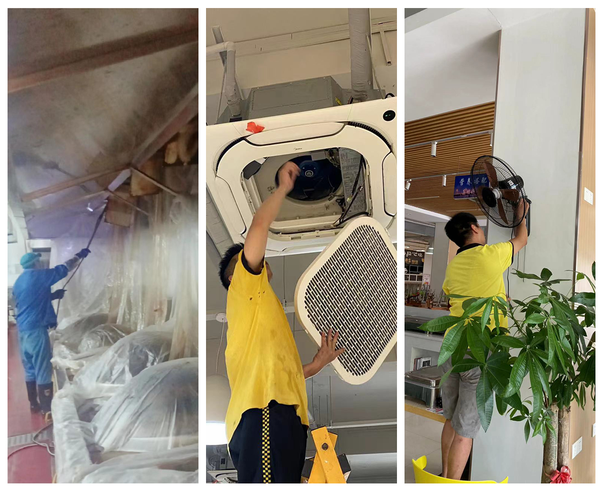 检修清洗食堂油烟机、餐厅空调及风扇