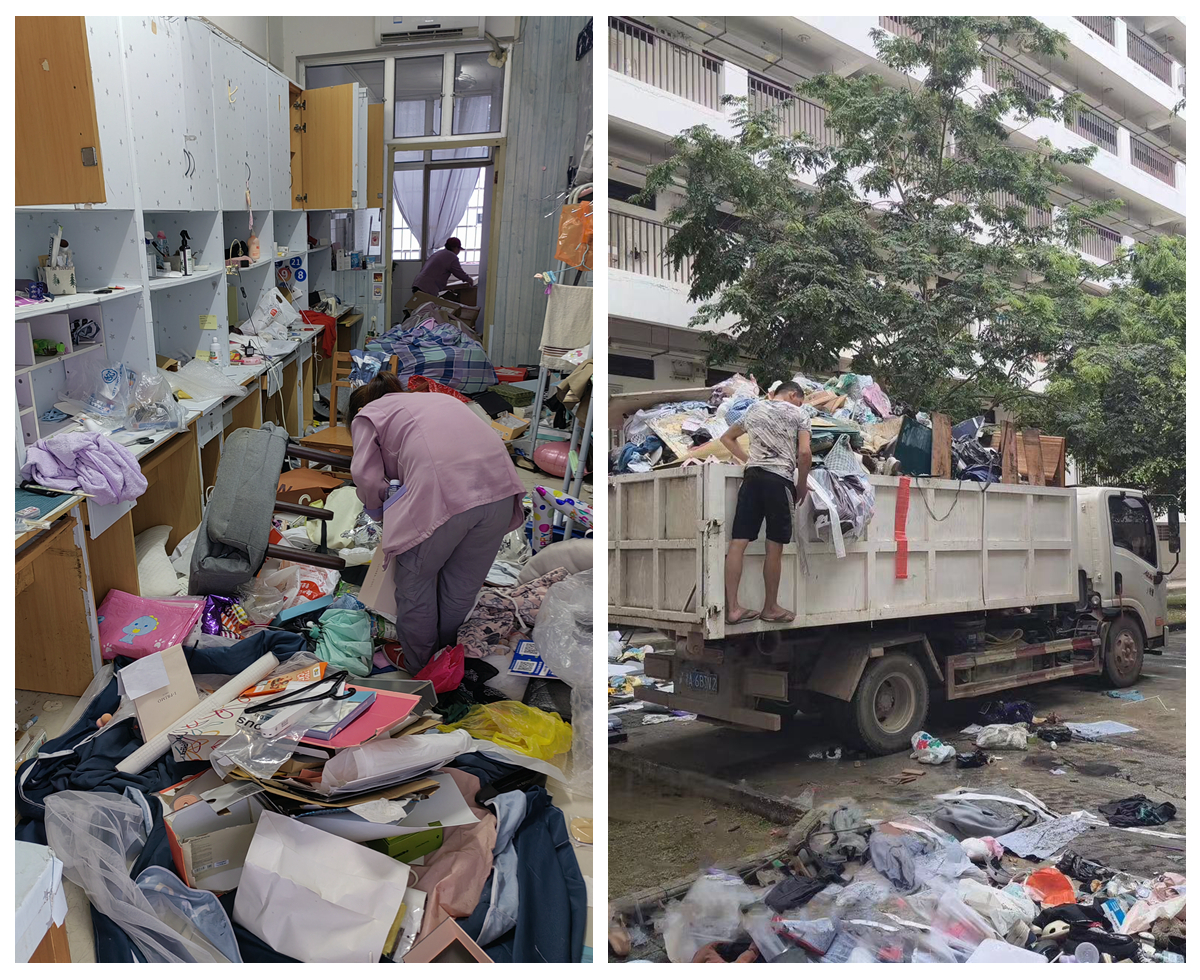 完成毕业生宿舍的清扫工作及校区学生宿舍的垃圾清运