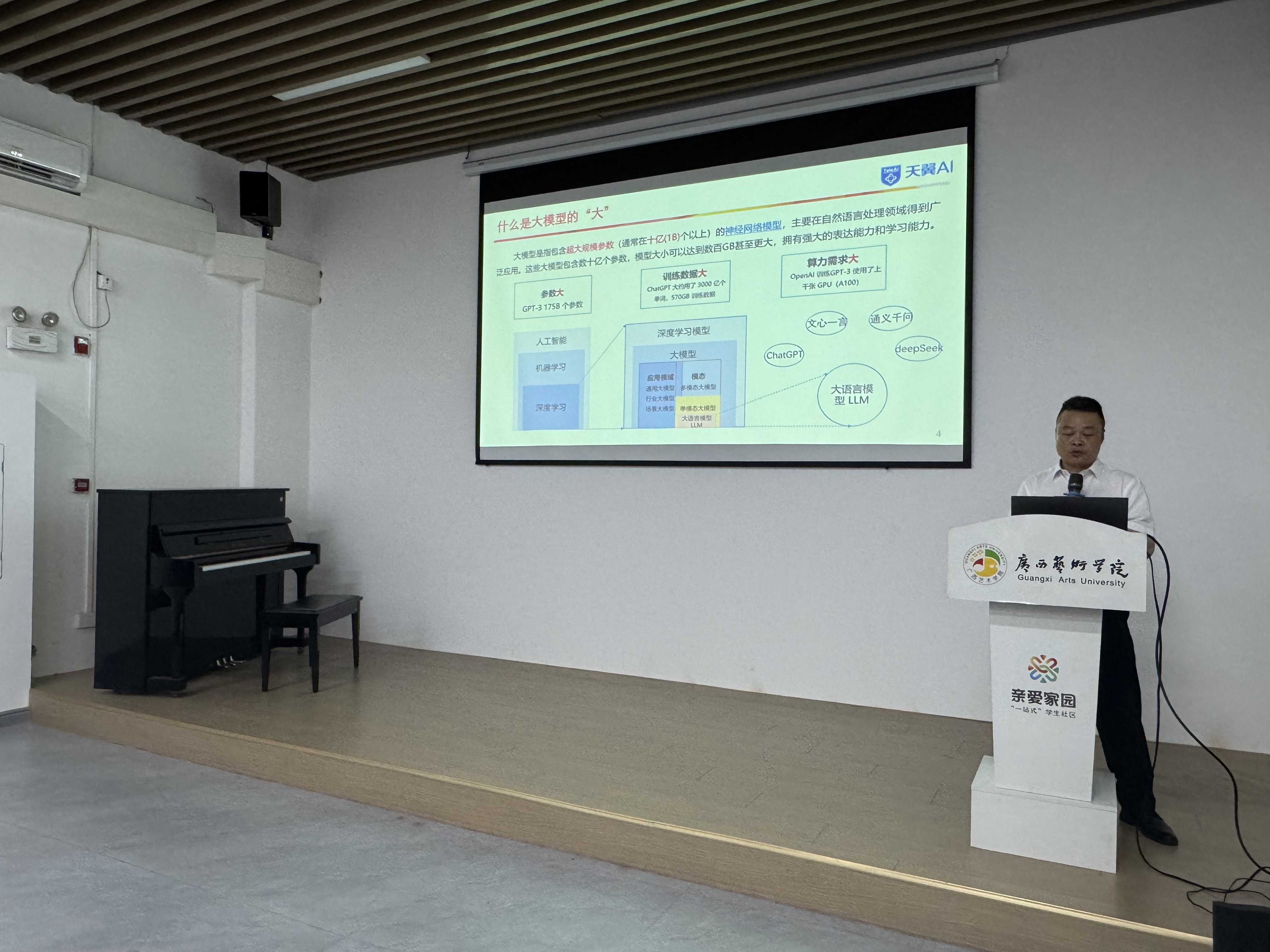 活动首站,南湖校区 2 号学生公寓一站式服务中心多功能讲堂内,中国电信南宁分公司政企第四党支部选派专家周斌担任主讲,通过生动讲解、现场提问与智能工具演示,向在场党员系统传授 AI 工具在信息检索、办公管理、公文写作、PPT 制作等场景的应用技巧。培训中,专家依托电信基于 DeepSeek 开发的应用,实时解答疑问,现场互动频繁、气氛热烈。培训结束后,参训党员合影留念。